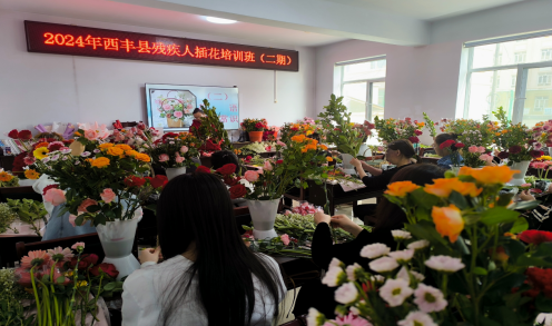 为进一步提高残疾人职业技能水平,促进残疾人就业创业,丰富残疾人精神文化生活,2024年4月,西丰县残联连续举办两期残疾人插花培训班,共有40名残疾人及其家属参加了培训。