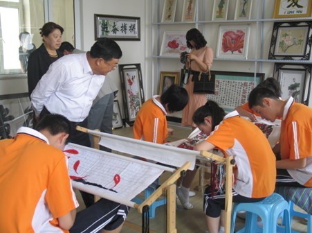 市政府副市长张启发观看学生们刺绣